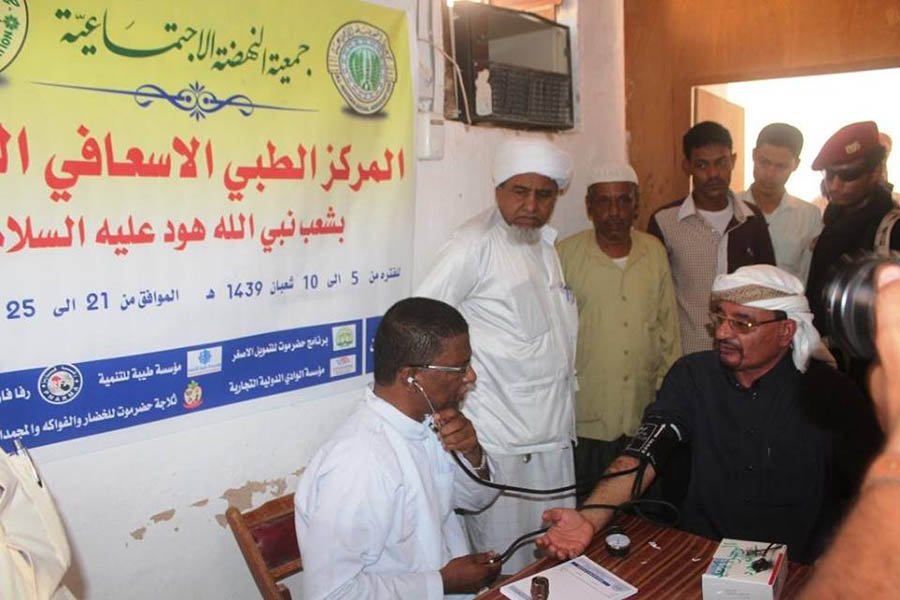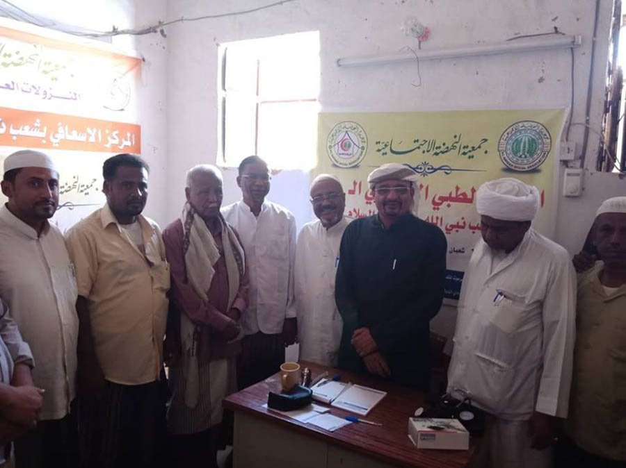 اقامت جمعية النهضة الاجتماعية في الفترة من 5-10 شعبان 1439هـ الموافق 21-25/4/2018م المركز الاسعافي ال(24) بشعب نبي الله هود عليه السلام حيث قدم هذا المركز الخدمة العلاجية المجانية لزوار شعب نبي الله هود والقرى المجاورة ( سناء وبروهوت والمخيبية ) حيث قدمت الجمعية في المركز الاسعافي والنزولات العلاجية خدمات طبية منها معاينة المرضى من قبل الاطباء بالمركز والفحص المختبري ، تقديم الادوية، فحص النساء الحوامل ، اعطاء استشارات طبية.كما تم النزول الى القرى المجاورة ( سناء وبروهوت والمخيبية ) لمعاينة وفحص المرضى وتقديم الدواء لهم مجاناً..كما زار المركز الاسعافي الاخ / عبدالهادي التميمي وكيل محافظة حضرموت بالوادي كما زار المركز أيضا العلامة الحبيب عمر بن حفيظ وشكر الزوار الجهود الطيبة من قبل الجمعية والعاملين بالمركز في تقديم خدمة صحية مميزه حيث استفاد من خدمات المركز والنزولات العلاجية 792 مريض.