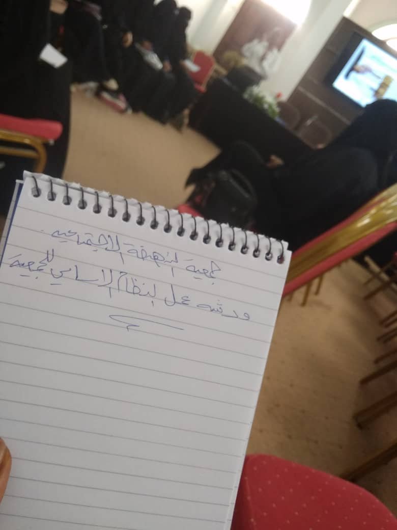 أقيمت يوم السبت الفائت ورشة عمل تحت عنوان النظام الأساسي لجمعية النهضة الاجتماعية حيث كان الحاضرون العضوات وأعضاء مجلس إدارة جمعية لنهضة الاجتماعية والمدراء التنفيذيين لبرامج الجمعية /برنامج حضرموت للتمويل الأصغر وبرنامج الريان للتمويل الأصغر.