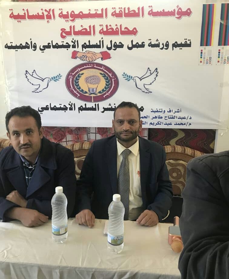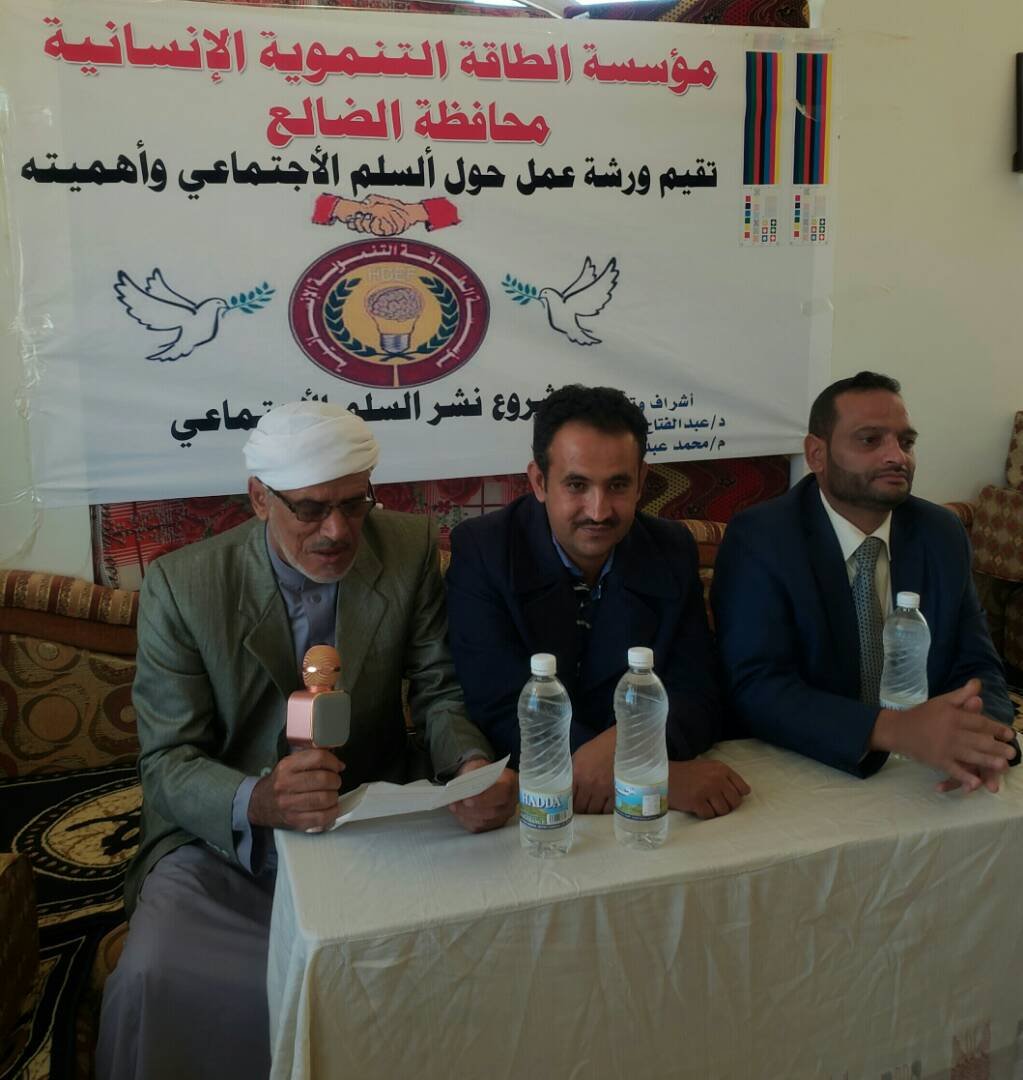 في اطار الحملة العربية لتعزيز التسامح والتعايش السلمي التي أطلقها الاتحاد العربي للتطوع قامت مؤسسه الطاقة التنموية الإنسانية في محافظة الظالع "ورشة عمل حول السلم الاجتماعي واهميته".حضر الورشة عدد من المشايخ والشخصيات الاجتماعية , وقد بدأت الورشة بمحاضرة القاها الدكتور عبد الفتاح الحميدي حول السلم الاجتماعي وأهميته وعن انواع النزاعات شاركت خلالها الشخصيات الاجتماعية بمقترحات تصب في تعزيز السلم الاجتماعي وزيادة الوعي بها في اوساط المجتمع المحلي.