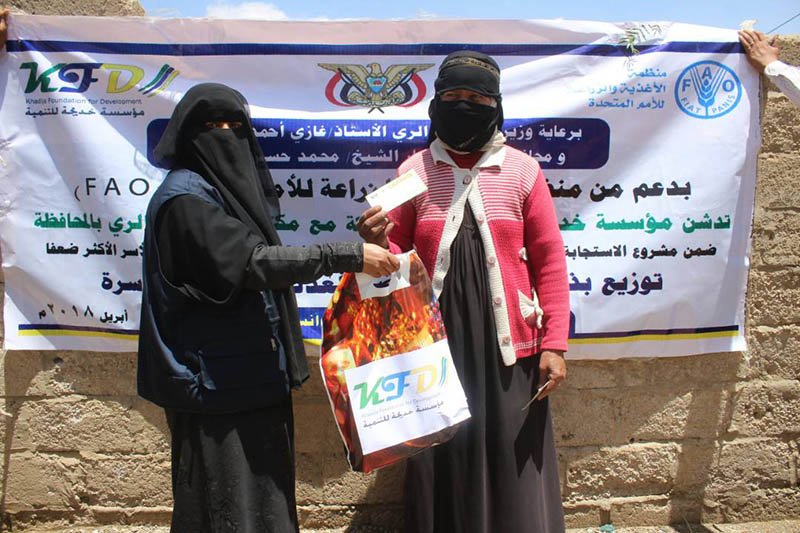 دشن وزير الزرعة والري في اليمن مشروع توزيع بذور الخضار لعدد أربعة آلاف و250 مزارعا في مديريتي جبل الشرق وضوران, حيث نفذت مؤسسة خديجة للتنمية المشروع بالشراكة مع مكتب الزراعة والري بالمحافظة بدعم من منظمة الفاو , وفي التدشين استمع وزير الزراعة والمحافظ من مدير مكتب الزراعة المهندس هلال الجشاري ومنسق مؤسسة خديجة جمال الفرزعي، إلى شرح عن المشروع الفئات المستهدفة، وكذا أصناف البذور التي يتم توزيعها والتي تشمل بذور الطماطم والكوسا والفلفل الحار والبصل والباميا.