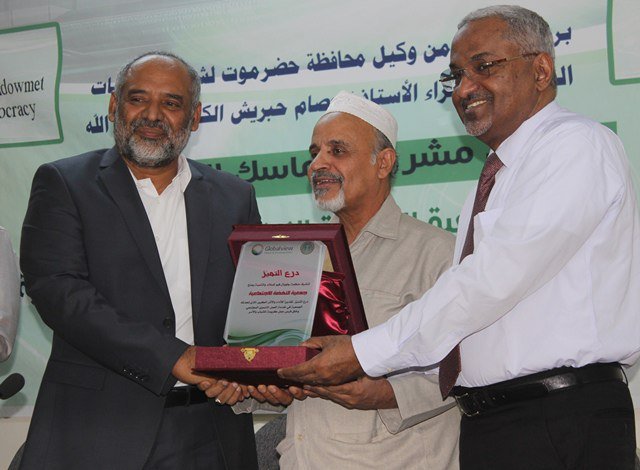 هذا ومنحت إدارة منظمة جلوبال فيو للسلام والتنمية خلال تدشين ورشة العمل جمعية النهضة الاجتماعية درع التميز تقديراً للأداء والأثر الكبير الذي تحدثه في خدمة العمل التنموي المجتمعي وخلق فرص علم كريمة للشباب والأسر، تسلمه من رئيس منظمة جلوبال فيو المهندس / بدر باسلمة ووكيل المحافظة لشئون الوادي عصام حبريش الكثيري عن جمعية النهضة رئيسها الأستاذ / عبدالرحمن السقاف ..